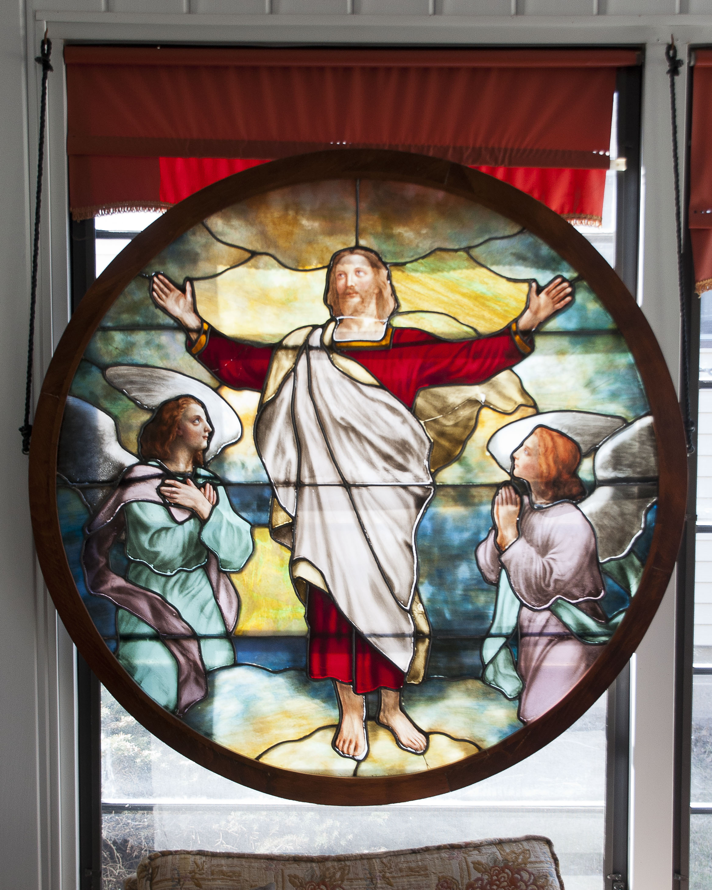 Wooden sculptures of the Holy Family and the Risen Christ are displayed in common areas, and a modest library is found in the recently expanded parish hall.